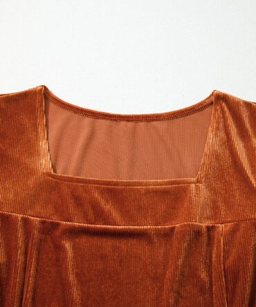 Clay Velvet Ribbed Texture Square Neck Slim Puff Sleeve Top